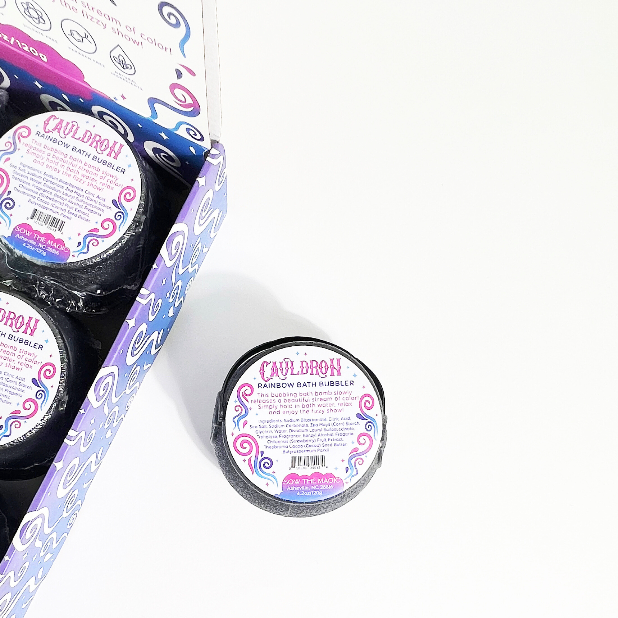 Each mini cauldron fizzes, foams and shimmers for a spellbinding soak that delights the senses and soothes the spirit.